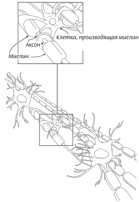 Рисунок 11. Отростки нейронов – аксоны – изолированы миелином, чтобы электрические сигналы шли быстрее