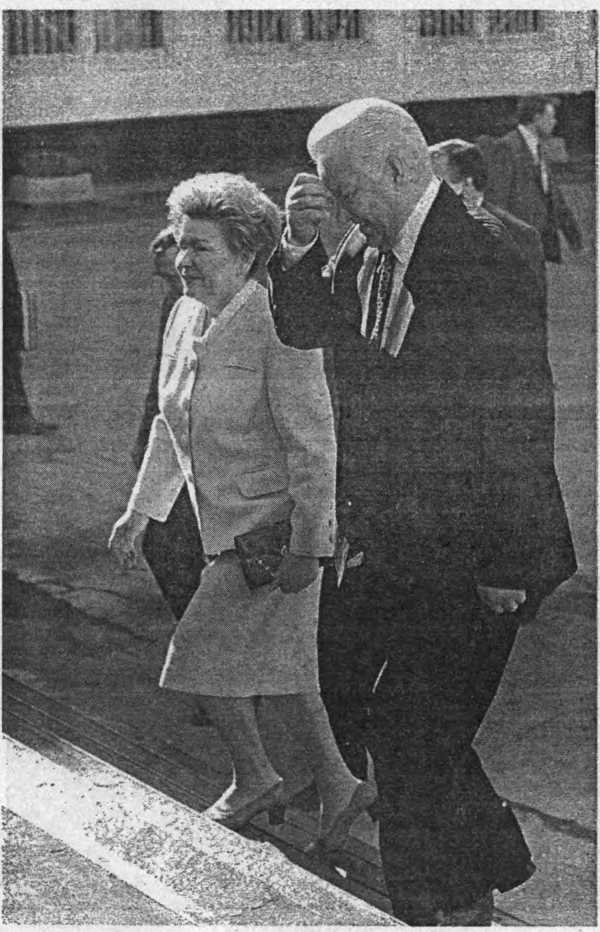Главное — она любит своего трудного президента. Я нашла определение их отношениям. Наина Ельцина НЕСЕТ своего мужа, как хрустальную вазу. Он же лишь позволяет ей делать это. Особенно это было заметно в период его недомоганий. Без слов, почти не меняя выражения лица, чуть-чуть прищурившись (Наина Иосифовна не любит носить очки), иногда сдерживая слезы, она ведет его под руку, кажется, приподнимая от земли, вытаскивает его из депрессии и слабости. Так было летом 1996 года, так было и остается и по сей день…