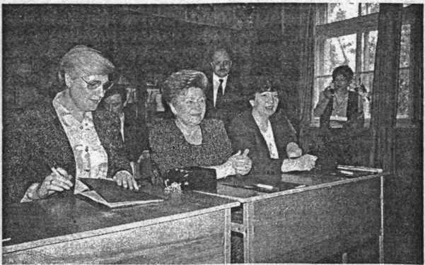 Наина Ельцина, супруга губернатора И.Яковлева и замминистра образования РФ М.Лазутова на выпускном экзамене в одной из Санкт-Петербургских школ. Июнь 1996 г.