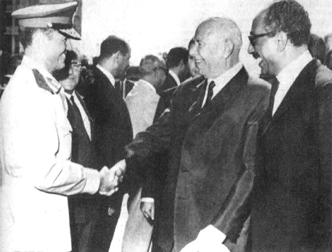 Генерал Шазли встречает в Каире Председателя Президиума Верховного Совета СССР Н.В. Подгорного (1971 год).
