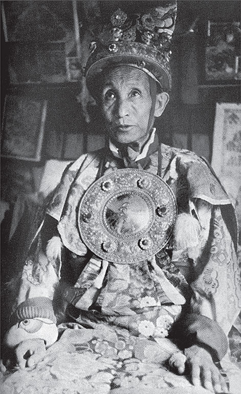 Главный оракул страны в процессе концентрации, незадолго до состояния транса, во время которого божество овладевает им и отвечает на вопросы представителей правительства