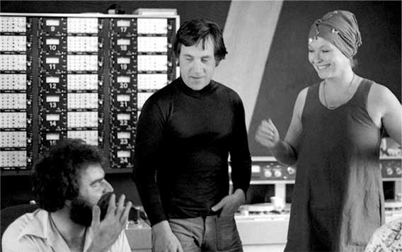 Слева направо: Андре Перри, Владимир Высоцкий и Марина Влади в студии звукозаписи “Le Studio”. Канада, Quebec, Мorin Heights. 2 сентября 1976 г. Фото – Яэль Пери (Ya?l Brandeis Perry)