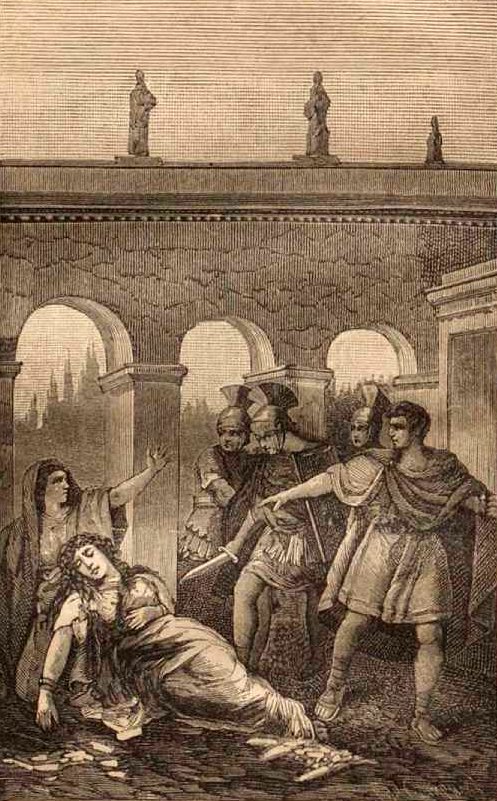 От этого брака родился сын, сначала названный в честь отца Домицием, а впоследствии Нероном. Осужденная императором Калигулой в государственном преступлении, Агриппина была отправлена в ссылку, но по восшествии на престол Клавдия была возвращена. Сделавшись императрицей, Агриппина могла удовлетворять своему тщеславию и для достижения своих целей употребляла самые жестокие средства и развратничала. Обладая далеко недюжинным умом, Агриппина легко забрала Клавдия в свои руки и сделалась всемогущею в государстве. Она тотчас же добилась титула Августы и, действительно, стала императрицей: давала аудиенции гражданам, занималась делами государства, вела беседы с посланниками, ходила в Капитолий и на всех торжествах восседала на первом месте. Чтобы показать свою власть вне Рима, она основала колонию в Рено, в стране, где родилась, и приказала назвать новую колонию своим именем «Агриппина». Ее заветной мечтой было возвести на тронь сына своего, Домиция, при помощи которого, она рассчитывала властвовать так же, как властвовала при престарелом муже; для достижения этой цели Агриппина совершала всевозможные злодейства. Новая императрица призывала к власти людей вполне недостойных; они входили в сенат не имея ни ума, ни чести и единственно служили лишь для поддержки деспотизма Агриппины. Подобный состав сената, само собою разумеется, не заботился о пользе граждан, а служил лишь орудием в руках тщеславной Агриппины. Таким образом Рим, после развратной Мессалины, попал под тиранию Агриппины, которая была более жестока, чем первая, и никак не менее развратна. Разница между двумя этими императрицами была та, что Мессалина открыто позорила государство, Агриппина же, напротив, делая то же самое, умела скрывать дурное под личиной благочестия. Она, нисколько не задумываясь, отдавала себя каждому, кто мог служить орудием для достижения ее тщеславных целей. Мессалина, нагло, даже с триумфом выставляла свой позор на свет Божий, — хитрая Агриппина сумела уверить всех в своей честности. Первая была разнузданная развратница, вторая — скрытная интриганка. Утвердившись на троне, Агриппина тотчас же набросилась на Лёлию Паулину, мечтавшую быть императрицей. Не желая уничтожить без всякого основания Паулину, Агриппина искала факта, могущего служить юридическим основанием для осуждения ненавистной ей Паулины; основания, разумеется, никакого не было, но Агриппина его выдумала: она объявила, что Паулина, при помощи оракулов, желала знать будущее императора. Это смешное обвинение, конечно, не могло служить юридическим основанием, прежде всего уже потому, что знать будущее императора не есть преступление, но хитрая Агриппина сумела направить дело так, что даже сам император Клавдий присутствовал в сенате, поддерживая обвинение против Паулины. Длинной речью Клавдий старался доказать, что Лёлия Паулина, желая знать его будущее, ставила государство в опасное положение, «а потому, — говорил император, — ради публичной безопасности, Паулина должна быть осуждена». Сенат, разумеется, приговорил обвиняемую к ссылке и к конфискации всех ее богатств. Но Агриппина не удовольствовалась этим, она не могла быть покойна до тех пор, пока Паулина была жива. Лишь только несчастная прибыла на остров, куда была сослана, как жестокая Агриппина послала туда трибуна с пр