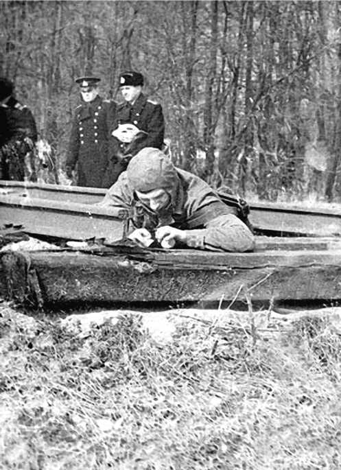 Тренировка на «Тропе разведчика» в Парусном: подрыв рельса. Середина 70-х годов. (Фото из архива автора)
