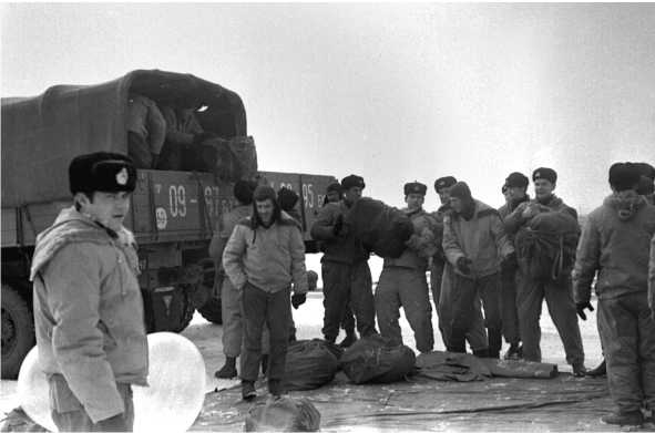 Воздушно-десантная подготовка водолазов-разведчиков. Перед вылетом. Автор — второй справа. Зима 1976 г (Фото автора)
