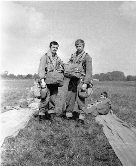 Парашютно-десантная подготовка водолазов-разведчиков Специальной разведки ВМФ СССР Автор справа. Середина 70-х годов. (Фото из архива автора)