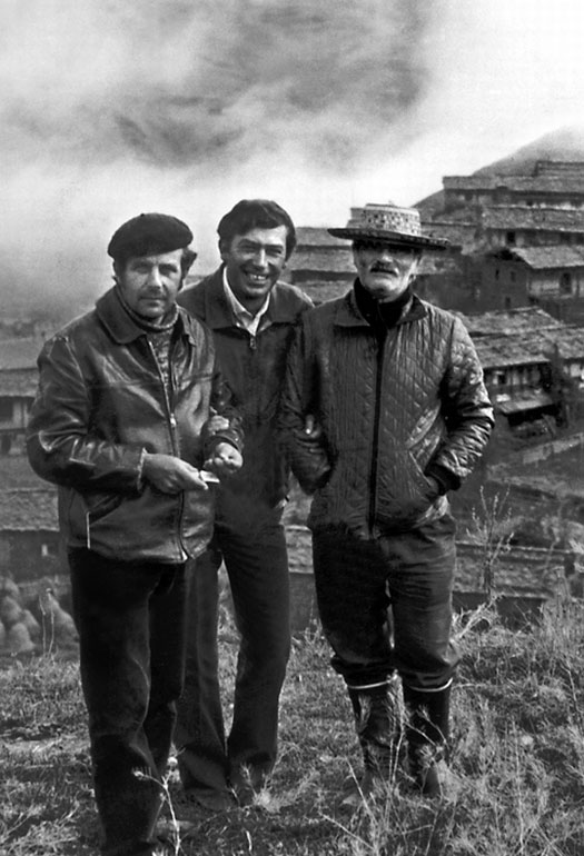 “Мимино”. На съемках в деревне Шинако. Оператор Анатолий Петрицкий, Кикабидзе и я.