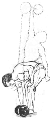 Упражнения для выбрасывания: хорошим упражнением для выбрасывания служит регулярное поднимание определенного веса на высоту приблизительно трех футов. Поднимать вес следует непрерывно до десяти раз, чтобы в конце концов получить навык в технике выбрасывания. Впрочем, у каждого атлета есть свои, долгим опытом выработанные, приемы тренировки для этого упражнения. Когда упражняющийся приобрел достаточно навыка в технике выбрасывания тяжестей, он может попытаться слегка повертывать выброшенный вес в воздухе. Опускать вес можно обеими руками. Когда, наконец, выбрасывание продолжалось от 4 до 8 месяцев, причем можно было уже свободно проделывать его 10 раз подряд, а вес еженедельно увеличивался на 1 фунт, тогда можно перейти к следующему: уменьшить число упражнений до трех, а вес увеличить на пять фунтов; когда-же и это будет не трудно, то можно начать снова. Между отдельными выбрасываниями нельзя делать паузы больше, чем на одну или две минуты, иначе пропадет энергия упражнений. Вес можно увеличивать каждые три или четыре недели, а в промежутки увеличивать число упражнении, отчасти занимаясь в то же время более легким весом для развития некоторых, еще вялых, мускулов. Такие всегда найти не трудно.