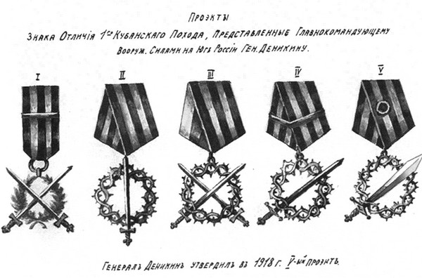 Варианты знака отличия «За 1-й Кубанский поход», представленные на рассмотрение А. И. Деникину. Художник К. Н. Николаев. Декабрь 1918 г.