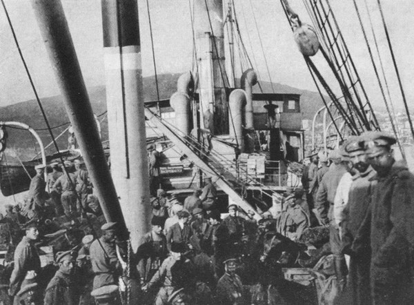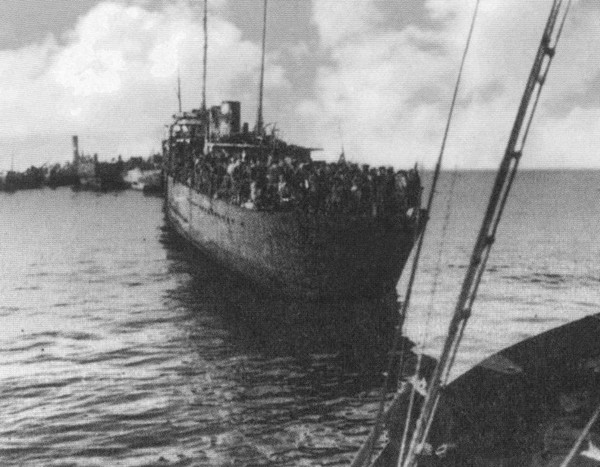 Крымская эвакуация. На палубе спасательного судна «Черномор». Ноябрь 1920 г.