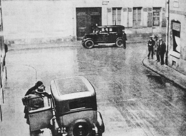 Следственный эксперимент на месте похищения А. П. Кутепова, на углу улиц Удино и Русселе. Париж, 1930 г.