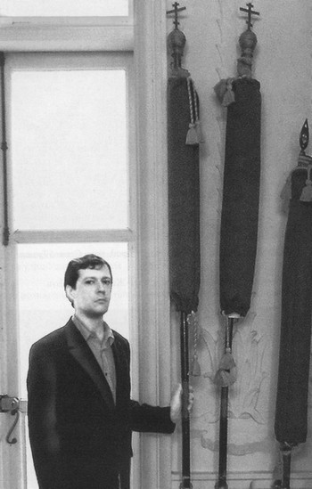 Автор книги у орденских знамен Святого Николая офицерских стрелковых генерала Дроздовского полков. Нью-Йорк, Знаменский синодальный собор