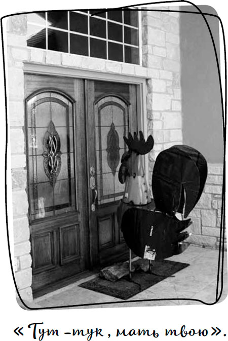 Подъехав к моему дому, мы тихонько поставили петуха на крыльцо, позвонили в дверь и спрятались за угол.