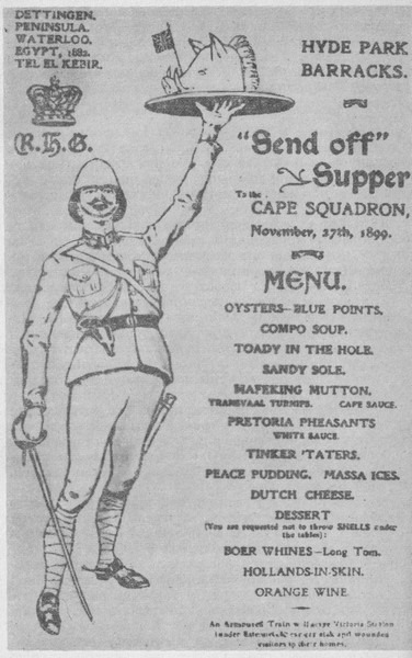 Меню праздничного обеда для английских офицеров, отправляющихся на трансваальский фронт
