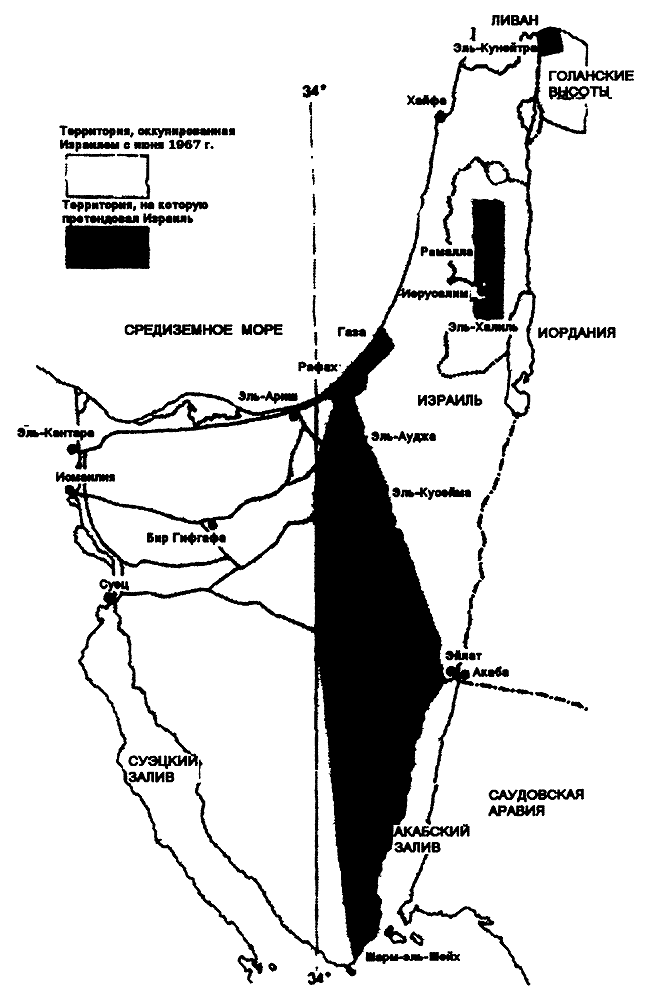 Карта I. План Израиля по аннексии арабских территорий — 1971 г.