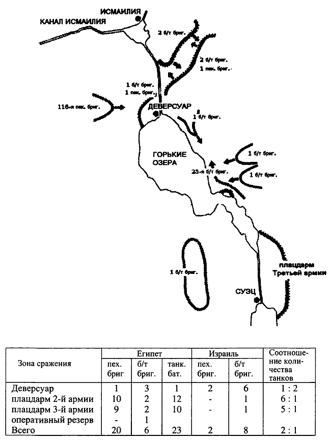 • 23-я бронетанковая бригада уничтожена 18 октября. Президентская бронетанковая бригада в Каире, так что в районе сражения осталось 7 бронетанковых бригад.