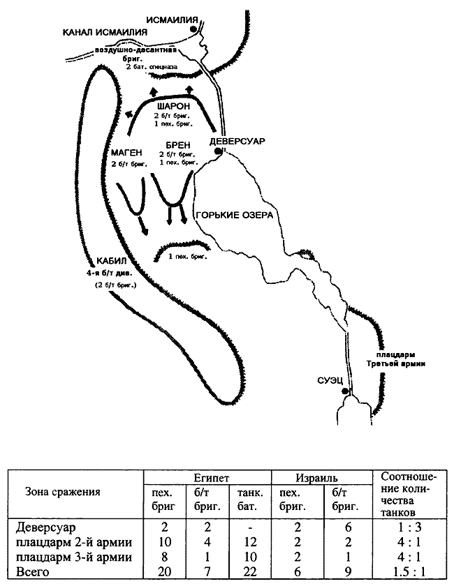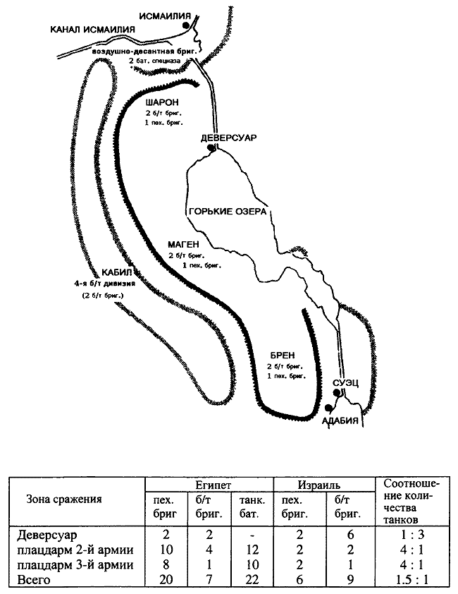 Карта II. Расположение войск в ночь на 16 октября 1973 года.