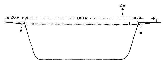 • Плечи откосов канала (А и Б) построены из камней и цемента.