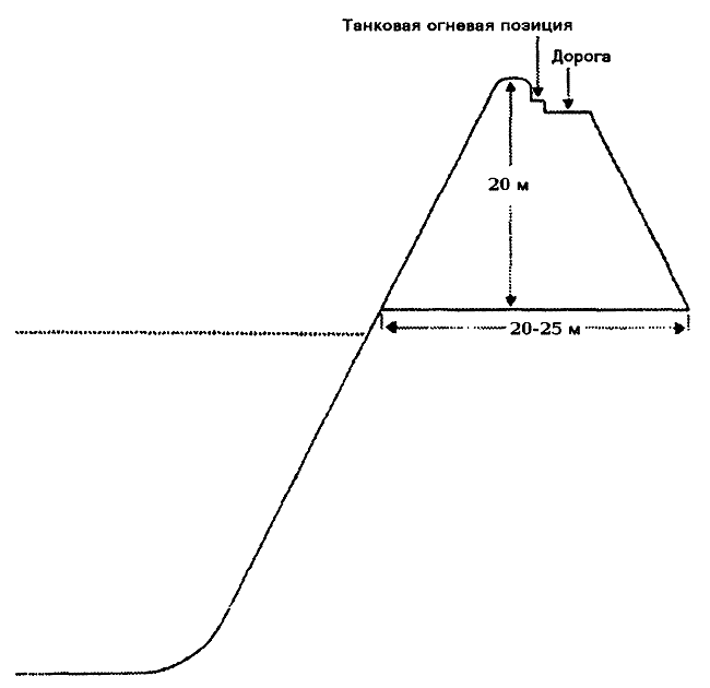 • Дорога на вершине вала, которая позволяет танкам передвигаться и маневрировать, оставаясь незамеченными с нашей стороны. Вдоль этой дороги оборудованы огневые позиции для танков, по 10 на одном километре.
