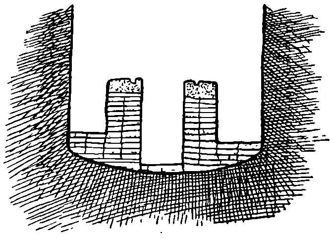Раскопки показали нам также, что строители обсерватории чрезвычайно остроумно разрешили стоявшую перед ними весьма трудную задачу. От них требовалось каким-то образом поместить внутрь обсерватории гигантский прибор.