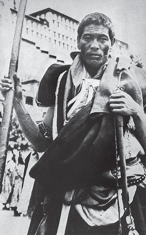 Монах-полицейский. Во время празднования Нового года он несет ответственность за поддержание порядка в городе. В знак власти у него в руках деревянная дубинка и хлыст. Подпоясан он коралловыми четками