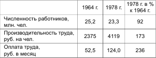 За период 1966–1979 гг. общая сумма повышения закупочных цен составила 232,5 млрд. рублей. На увеличение оплаты труда было направлено 127,1 млрд. руб. и стоимости материальных ресурсов – 139,5 млрд. руб., а всего 266,6 млрд. рублей.