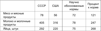 Несмотря на положительные результаты, уровень производства продукции животноводства еще не обеспечивал потребности страны по научно обоснованным нормам. Потребление основных продуктов на душу населения в 1987 году составляло (в кг):