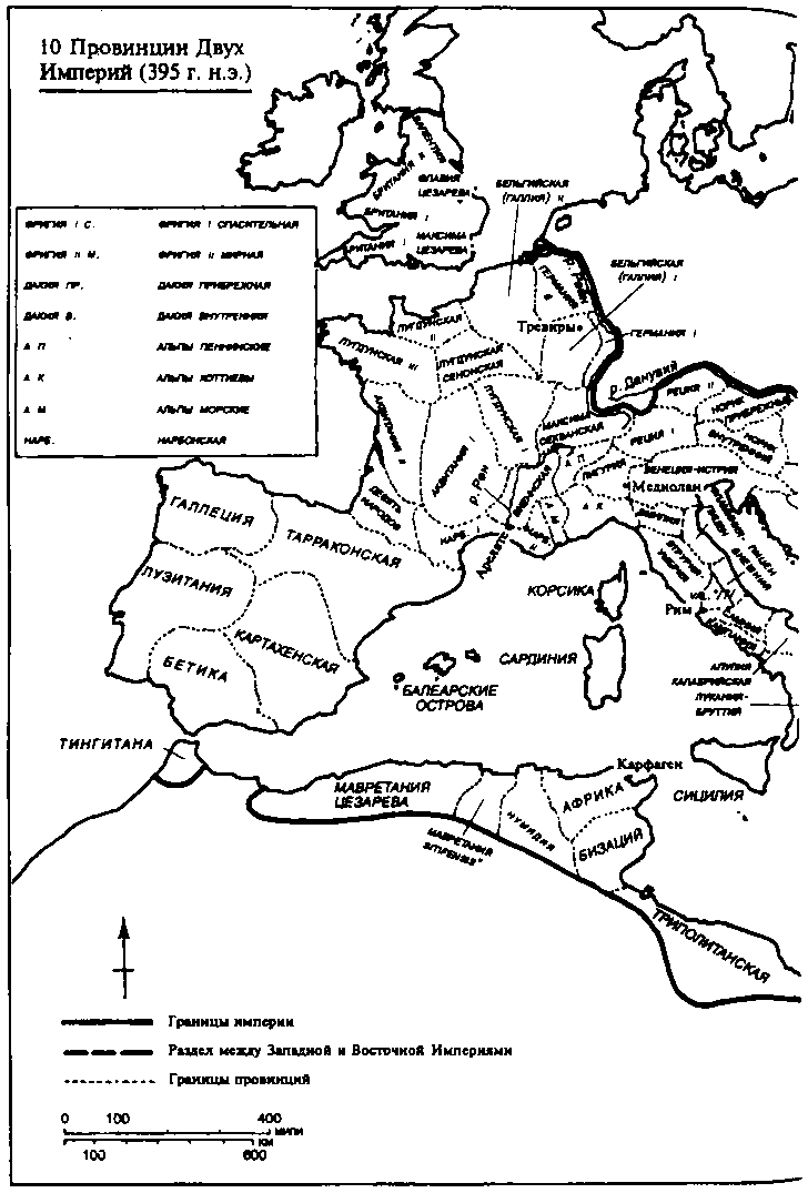 Феодосий умер в следующем году, и восемнадцатилетний Аркадий сменил его на восточном троне, в то время как его брат Гонорий стал номинальным правителем Запада. Это разделение оказалось решающим событием. Территория римского государства и раньше, бывало, разделялась на две части, но один из императоров обычно считался старшим по отношению к другому, поэтому сохранялась хоть какая-то видимость единства. Давление политических и военных обстоятельств новой эпохи означало, что такое положение более невозможно: к тому времени оба правительства склонялись к тому, чтобы идти каждое своим путем. Это правда, что законодательство, провозглашаемое восточным и западным императорами, относилось ко всей Империи, и каждый из них чеканил монеты с именем и портретом своего коллеги. И все же это новое разделение было более ощутимым, чем любой предыдущий раздел власти, и в самом деле политические отношения между двумя администрациями часто бывали весьма напряженными. Существуют разные точки зрения относительно того, с каких пор «Восточную Римскую империю» можно считать «Византийской империей», тем не менее многие считают Аркадия первым византийским правителем.