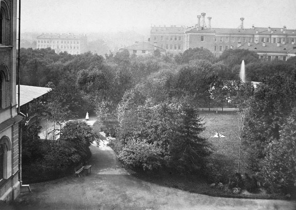 Вид на сад Павловского института с верхнего этажа здания