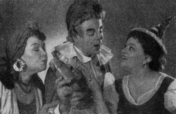 Разве трудно узнать в этих сказочных героях и некоторых хорошо знакомых нам персонажей, все еще встречающихся в жизни. В этом втором адресе — сатирический прицел спектакля. Но Райкин, играя в современности, все время помнит о сказке и ее героях. Приближая их к современному зрителю, он, однако, идет от традиционного воплощения итальянских масок и делает это с большим актерским талантом. И Тарталья, и Панталоне, и особенно Труфальдино получают чрезвычайно интересное и значительное внешнее и внутреннее раскрытие. В шутках и веселости Труфальдино, в его оптимизме и мудрости, в его необыкновенно живом и пластически очень остром облике возникают черты героя, близкого и понятного народу.