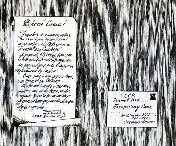 Спасибо тебе за газетные вырезки. Я наконец наткнулся на человека, знающего русский язык, и он сделал для меня перевод всего текста. О том, что Хагенский окружной суд, занявшийся опять делом Френцеля, выезжал в Донецк, я знал из сообщений печати. Не выслушать показаний шести собиборовцев, граждан СССР, они на этот раз не могли. Ваших журналистов поразила несуразность вопросов, которые судьи вам задавали, и они отмечают, с каким достоинством вы, свидетели, на них отвечали. Мы здесь уже давно привыкли к тому, что искать логику и тем более объективность у большинства западногерманских судей — пустая затея.