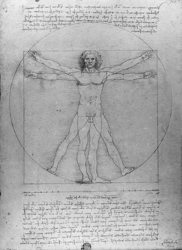 И, как некий научный и художественный итог деятельности Леонардо в этой области, можно рассматривать его рисунок, известный во всем мире как Витрувианский человек (лат Homo vitruviano). Он был создан в 1490–1492 годах и представляет собой обнаженную мужскую фигуру, изображенную в двух наложенных друг на друга проекциях: с разведенными руками и ногами, вписанную в круг, и с разведенными руками и сведенными ногами, вписанную в квадрат Используя трактат римского архитектора Витрувия «Об архитектуре», Леонардо создал пример классических пропорций человеческого тела, которые были подробно описаны античным автором.