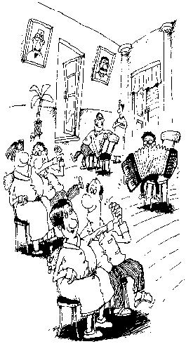 Запомнился урок танцев в кардиологическом санатории на Каменном острове. Тучные, с одышкой, сердечники неподвижно сидят на стульях.