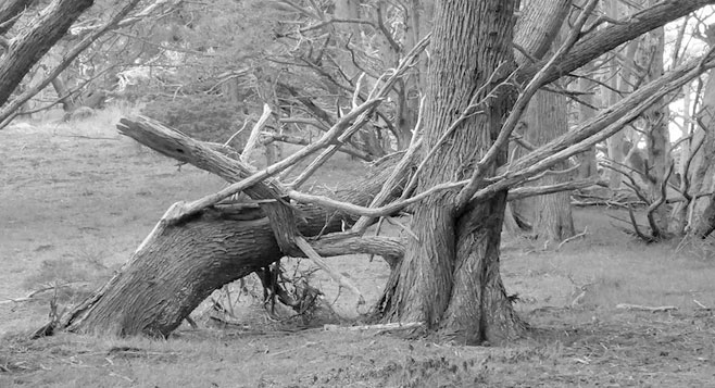 Из всех моих любимых мест в окрестностях Монтерея самое, наверное, любимое – заповедник Point Lobos. Мы долго гуляли по Львиному мысу, окруженному бухтами и скалами, о которые шумно разбиваются волны. На островах в открытом океане действительно живут колонии громко лающих морских львов и крикливых птиц, а в воде иногда можно увидеть морских выдр, которые плывут на спине, поедая морского ежа. На самом мысе стоит роща монтерейских кипарисов, некоторые из них покрыты испанским мхом и кружевом лесного лишайника; изумительны не только живые, но и мертвые кипарисы, напоминающие гротескных чудищ. Эти своеобразные скульптуры мы с Пашей прозвали лесными тотемами. «Мыс львов» заворожил Пашу, как и Васю Аксенова сорока годами раньше.