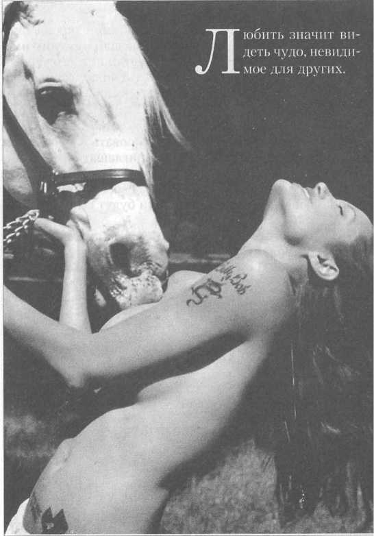 Их дом напоминал фабрику бесконечного удовольствия: вибрирующие кровати, потайные комнаты для "тематического" секса… Супруги обменивались нижним бельем, занимались сексом по пейджеру и дарили друг другу диковинные подарки. И, как говорится, были по-своему счастливы. Под кроватью, вне поля видимости по в пределах досягаемости у них хранился нож, который они всегда держали под рукой, чтобы чувствовать себя безопасно во время сна. И еще, может быть, потому, что по древнеиндийским преданиям, если положить нож в изголовье кровати острием вниз, то даже самая сильная душевная или физическая боль, мучающая вас, отпустит. У конца кровати, около телевизора всегда были навалены кучи видеокассет о "Короле Холма", которые Анджелина и ее "любимый мужчина" Билли Боб Торнтон любили смотреть на ночь маленькими дозированными порциями. Над кроватью в рамке висело ярко-красное, как закат, пятно-обещание: "Навсегда!" с тремя восклицательными знаками в конце. Это слово было рождественским подарком Билли Бобу от Анджелины, Маркизы Ангелов, как он ее любовно называл. Этот порыв души Анджелина запечатлела своей собственной горячей кровью, как некогда Зоя Космодемьянская…