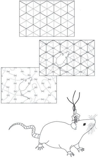 Довольная крыса бегает по большому вольеру и ищет шоколад, который через равные расстояния разложил ученый. На голове у крысы надето нечто, напоминающее шлем с проводами. Провода на шлеме каждый раз регистрируют, как «особая» нервная клетка в мозге крысы возбуждается. Эта клетка находится в височной доле. На первый взгляд кажется, что эта клетка возбуждается абсолютно случайным образом, но постепенно, пока крыса радостно бегает в поисках шоколада, начинает вырисовываться шаблон сетки – не координатной сетки с долготой и широтой, как на обычных географических картах, а геометрически идеального шестиугольника, образованного линиями между узлами координатной сетки, при пересечении которых включается один и тот же нейрон. Все шесть сторон одинаковой длины, и расстояние от центра шестиугольника до центров всех его сторон абсолютно одинаково. Разработчики компьютерных игр уже довольно давно поняли, что шестиугольная сетка гораздо лучше подходит для создания виртуальных вселенных, чем обычная прямоугольная. Как теперь оказалось, мозг предложил это на много миллионов лет раньше разработчиков. А как же иначе.