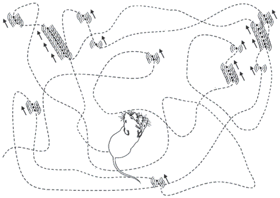 Нейроны направления головы рассказывают нейронам места, в каком направлении движется крыса, а нейроны скорости говорят, с какой скоростью она движется. Нейроны решетки знают, как воспользоваться этой информацией, и координатная сетка обновляется. Нейроны решетки формируют некую карту, а нейроны границы ее ограничивают. Нейроны места предоставляют информацию о местонахождении. Все эти нейроны важны для способности ориентироваться. В совокупности эти клетки образуют навигационную систему – GPS-систему мозга со спидометром, компасом и отметками границ.