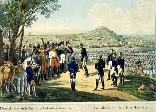 Въезд Александра I во главе союзных войск в Париж 19 марта 1814 г. стал апогеем его величия и славы. Уставшие от бесконечных войн французы, наполнявшие улицы, кровли и окна домов, встречали своих вчерашних врагов с неподдельной радостью, приветствуя их как освободителей. Особый энтузиазм парижан вызывал молодой, красивый, улыбавшийся русский царь. Повсюду были слышны крики: «Да здравствует император Александр! Да здравствуют русские!»