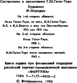 На 3-й стороне обложки: Н. И. Гаген-Торн после колымских лагерей. 1942 г.