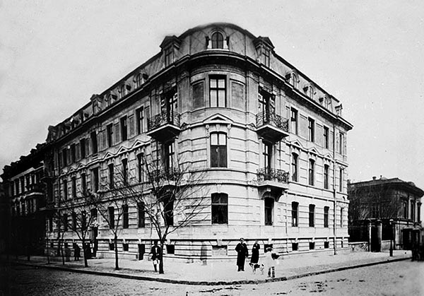 «Дом, где я прожил первые семь лет своей жизни и где кончилось мое безмятежное детство». На фотографии видны окна нашей комнаты на первом этаже: угловое и два по сторонам – на улицу Гоголя и на Сабанеев мост.