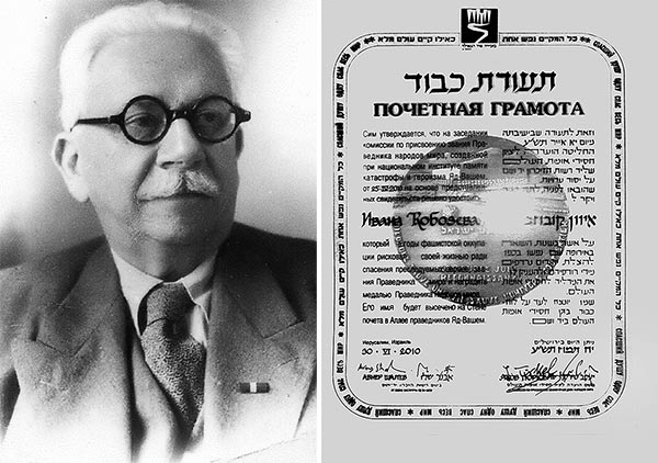 Профессор Иван Алексеевич Кобозев. 1950-е гг. Грамота о присвоении ему звания «Праведник народов мира».