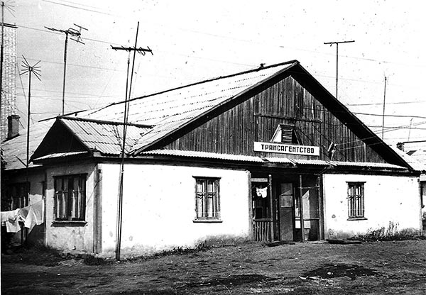 «Аэродрома здесь не было, и самолет садился на грунт. Поселок был довольно сонный и состоял из добротных старых бревенчатых домов, поставленных, вероятно, еще в XIX веке, и немногочисленных стандартных пятиэтажек…» Вверху: Заинск, центр города. Транспортное агентство. 1972 г.
