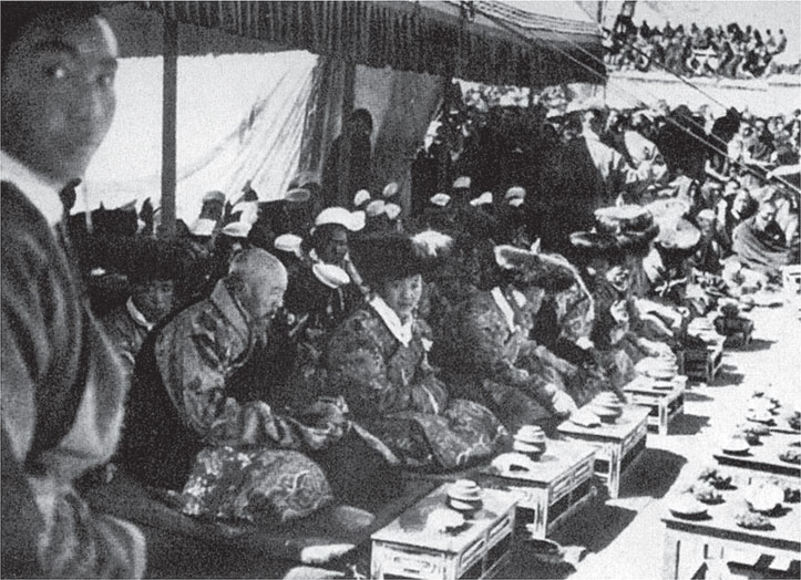 Аристократы – на переднем плане четыре члена Кабинета министров – в качестве зрителей принимают участие в торжественных церемониях у подножия Поталы