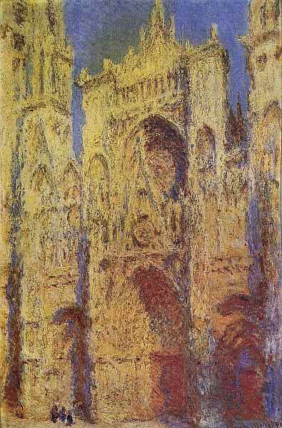 В 1892 Клод Моне приступил к написанию цикла, посвященного Руанскому собору. За два года живописец выполнил 50 картин, на которых представил готический фасад собора последовательно в разное время суток: с раннего утра до вечера. Солнечный свет творит удивительные метаморфозы не только с цветом, но и с самой каменной сутью собора. Простоявшая несколько веков стена, благодаря готической ажурности и заливающему ее свету, кажется почти невесомой и нерукотворной. Свет словно проникает в нее, растворяя в себе каменную мощь. Под кистью Моне собор более не представляет материальной субстанции и становится эфемерным. Он будто сливается с небом, перестает быть земным творением. Не этого ли эффекта и хотели добиться зодчие далекого Средневековья, вздымая в небо каменное кружево церковных стен? Моне проник в концептуальную суть готического искусства. Позднее, во время путешествия в Италию, художник найдет импрессионистическими венецианские дворцы (произведения итальянской готики). Цикл «Руанский собор» был выставлен в 1895 и имел огромный успех.