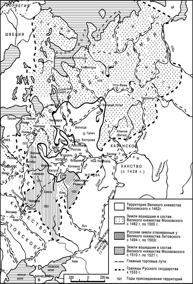 Главным инструментом объединения русских земель стало насильственное присоединение. Такой выбор в средствах диктовался прагматическими соображениями – в условиях постоянной внешней угрозы со стороны Великого княжества Литовского и осколков Золотой Орды Иван III не обладал временем для заключения сложных политических союзов на основе компромиссов или экономических интересов. Ему приходилось постоянно иметь в виду целый спектр политических задач и проблем. Это значит, что большинство из них приходилось решать одновременно – отстаивание независимости России, освобождение от ига, собирание земель и их дальнейший ввод в состав государства, включавший составление кадастровых описаний, назначение великокняжеской администрации и раздачу земель в поместье. Не давали покоя и дела личного характера, тесно сраставшиеся с государственными интересами – взаимоотношения с братьями, заключение династических браков и выбор наследника.
