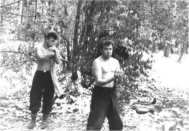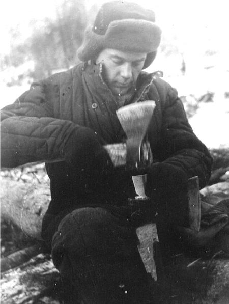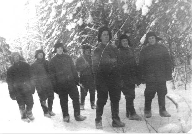 39. Лесозаготовки в Ломоносовском районе. Выход бригады лесорубов на работу.