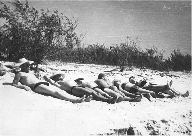 53. Днепр. Остров Комсомольский. Южный загар. Крайний слева – Б. Щербаков.