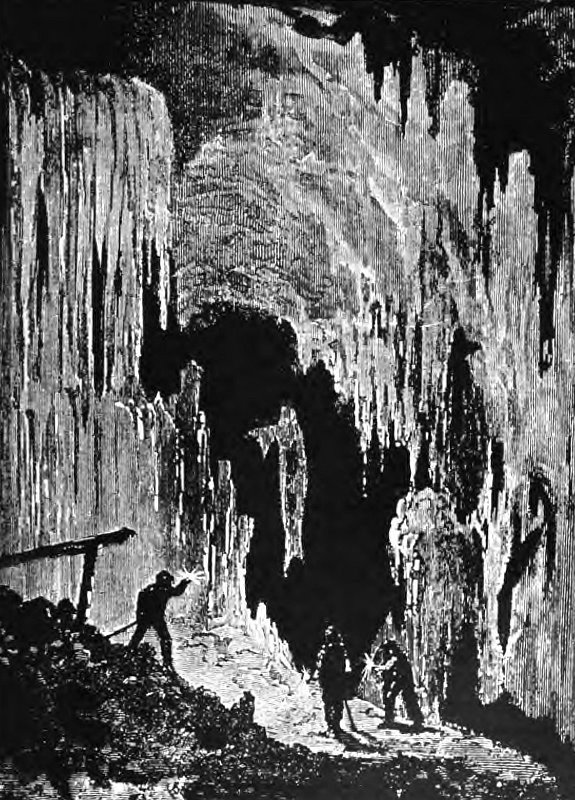 Проводник рассказал мне дорогою, что до открытия пещеры их город был ничтожен, и к нему не было даже железной дороги. В тех местах, под которыми открыта пещера, мальчишки часто охотились за кроликами, и это обстоятельство дало повод предполагать, что тут существуют пещеры. Между старожилами сохранялась, кроме того, легенда о какой-то пещере, в которой скрывались еще индейцы, но потом о ней совершенно забыли, и самый вход в пещеру давно зарос кустами. Но вот, в апреле 1878 года два брата Кампбель с фотографом Стебином, путешествуя по окрестностям, остановились в Лурее и, выслушав легенду о пещере, решились приступить к розыскам. Они бродили и копали землю несколько месяцев, истратили не мало денег, но всё напрасно. Окрестные жители прозвали их «пещерными крысами» и осыпали насмешками. Только в августе один из братьев Кампбель открыл довольно значительную впадину, заросшую сорными травами, из которой виднелась как бы подземная галерея. Проникнув в эту галерею, Кампбель неожиданно провалился и, получив довольно тяжкие ушибы, стал звать на помощь, но никто не слышал его криков. К счастью, у него были при себе спички и свеча; и вот, осветив свою невольную темницу, он увидал обширный грот со множеством весьма красивых сталактитов, очень разнообразных по форме и цвету. Через некоторое время товарищи заметили исчезновение своего спутника, разыскали впадину, проникли в пещеру уже при помощи веревки и спасли несчастного. Выйдя на поверхность земли, друзья никому не сказали о сделанном открытии, а только поспешили купить участок земли, где находился вход в пещеру. Окружающая местность не отличалась плодородием, и прежний владелец охотно уступил свой участок за бесценок. Но когда братья вернулись и, приступив к систематическим исследованиям, открыли множество извилистых ходов и гротов поразительной красоты, то прежний владелец подал жалобу и стал домогаться особого вознаграждения. Между тем братья успели разгласить о своем открытии; образовалась акционерная компания для постройки железной дороги в Лурей, и ей-то они продали свой участок уже за 40 000 долларов. Город получил известность, стали строить гостиницы, и жители начали обогащаться на счет приезжих. Знаменитый Смитсонианский институт снарядил сюда экспедицию ученых, которые исследовали и вписали пещеру, а также открыли в окрестностях множество курганов, выстроенных еще индейцами, быть может, тысячи лет тому назад. По общим отзывам, Лурейская пещера если и не отличается значительными размерами, зато по красоте отложений и некоторым геологическим особенностям — одна из замечательнейших на всём земном шаре.