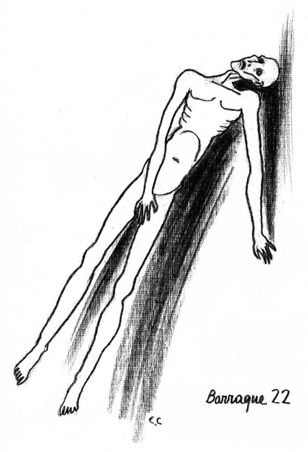 «Каждый день умирало от двадцати до тридцати пяти человек. Их отвозили вечером в общую могилу из барака № 22, где их сваливали в кучу (именно этот барак, где доктор Кляйн увидел как-то раз, как человек, которого посчитали мёртвым, с трудом поднимался: для него это была лишь отсрочка…). Трупы перевозили ночью, чтобы избежать слишком любопытных взглядов».