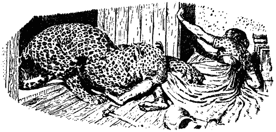 За все эти долгие восемь лет был лишь один-единственный случай, когда людоеду оказали сопротивление, и в этом случае сопротивлявшимся была женщина. Она спала одна в хижине, дверь которой оставила незапертой. Эта дверь, как и в случае с женщиной, которой удалось избегнуть гибели, но остаться с покалеченной рукой, отворялась внутрь. Войдя в комнату, леопард схватил свою жертву за левую ногу. В то время как он тащил женщину через комнату, ее рука коснулась gandesa — кухонной принадлежности для рубки мякины скоту. Им она нанесла удар леопарду. Тот не ослабил хватку, продолжал, пятясь, тащить свою добычу, и тогда женщина или сама прихлопнула дверь, или же это произошло случайно. Как бы там ни было, она оказалась по одну сторону двери, а леопард по другую; он напряг свою громадную силу и оторвал несчастной женщине голень.